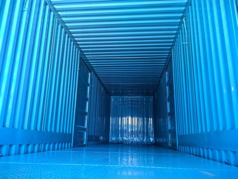 10000×2450×2500mm, tấm đáy có hình mẫu 3mm, các tấm cạnh lợp 2mm lớn (cấu trúc lợp dọc), Cửa đôi, 1 cửa bên, với nắp trên.